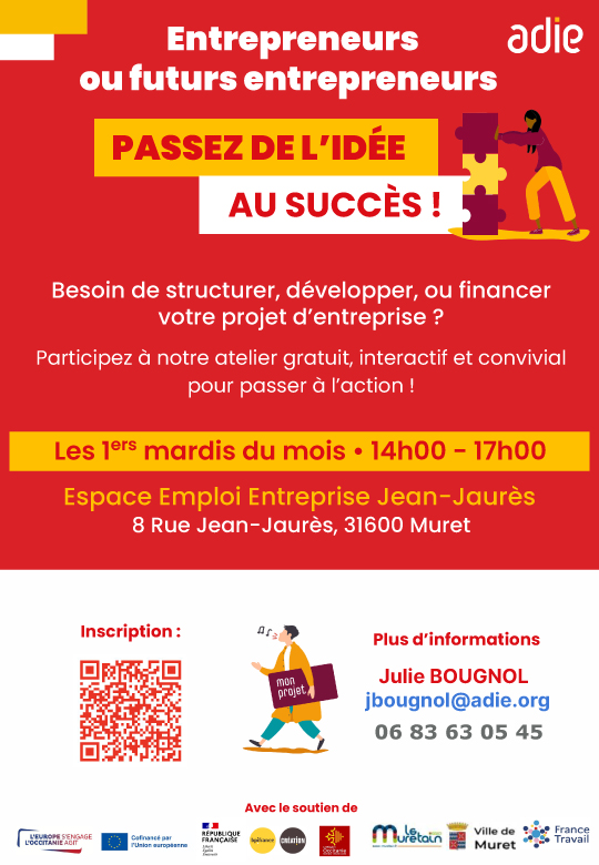 Besoin de structurer, développer, ou financer votre projet d’entreprise ? Participez à notre atelier gratuit, interactif et convivial pour passer à l’action !